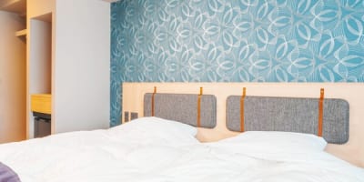 京都芸術大学キャラクターデザイン学科とのタイアップ、若手アーティスト達のアート作品がお部屋の壁を飾っています。