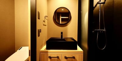 ホテル内装デザインや家具デザインを手掛ける関西の新進気鋭のデザインオフィス、Thyme.DESIGN STUDIO inc. (アカイアツロウ氏)のデザインによるシックで落ち着きのある佇まいです
