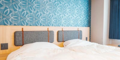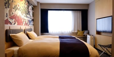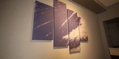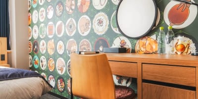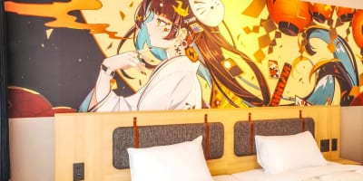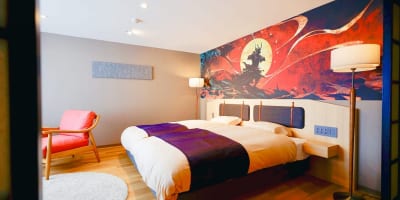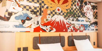 京都芸術大学キャラクターデザイン学科とのタイアップ、若手アーティスト達のアート作品がお部屋の壁を飾っています。