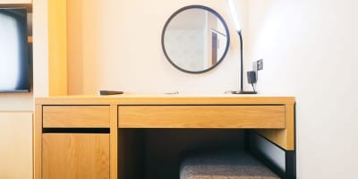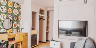 Wi-Fi対応、ハイセンス製40V型液晶テレビ(ファミリータイプは50V型)、個別ルームエアコン、温水洗浄機付きトイレ、シャープ製空気清浄機、シモンズ製シングルベッドマットレス、ライティングデスク、ユニットバス(一部、トイレ・バスのセパレイトタイプ)、マイナスイオンヘアドライヤー、小型冷蔵庫、湯沸かしポット