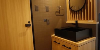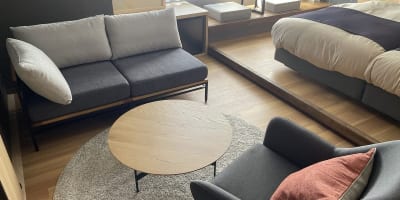 ホテル内装デザインや家具デザインを手掛ける関西の新進気鋭のデザインオフィス、Thyme.DESIGN STUDIO inc. (アカイアツロウ氏)のデザインによるシックで落ち着きのある佇まいです