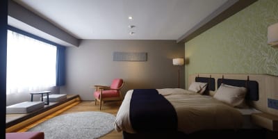 ベッドルームと和室の2部屋構成、大人4名でもゆっくりとお休み頂けます